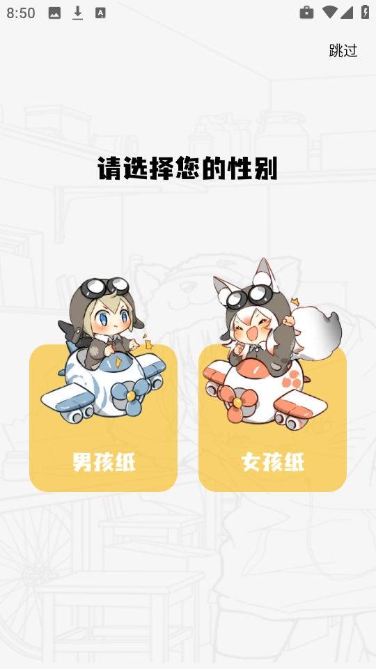 2、接着自定义选择您的性别,或者是直接选择“跳过”。
